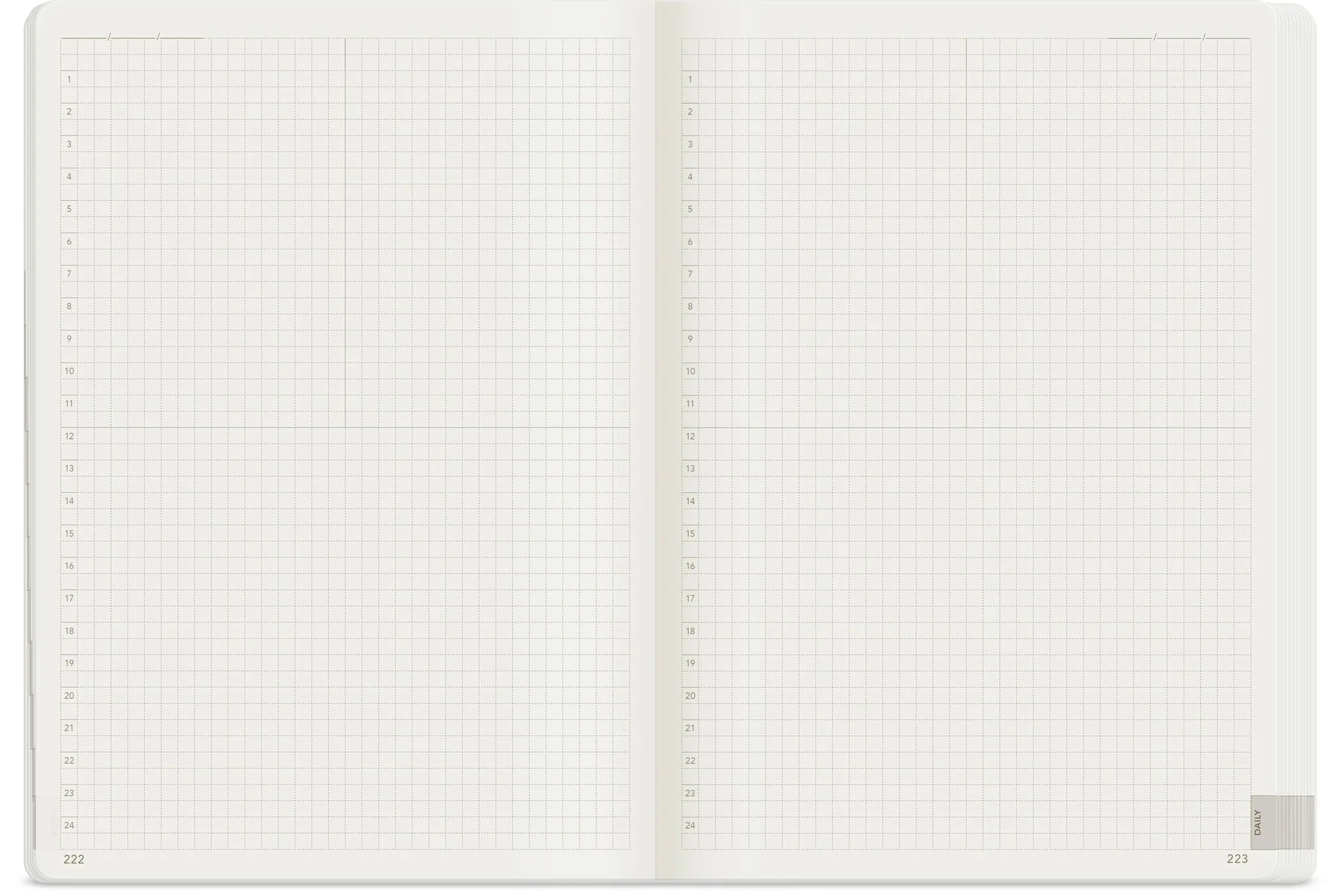 Designed with a minimalist aesthetic, this planner helps keep your space uncluttered, fostering creativity and inspiration. Its clean, open design allows you to personalize it, making it truly your own. The simplicity of the layout provides a blank canvas, encouraging you to infuse your unique style and ideas. Whether you're a professional, student, or artist, this planner offers the flexibility and freedom to structure your days in a way that best suits your needs, all while maintaining an elegant and organized appearance.