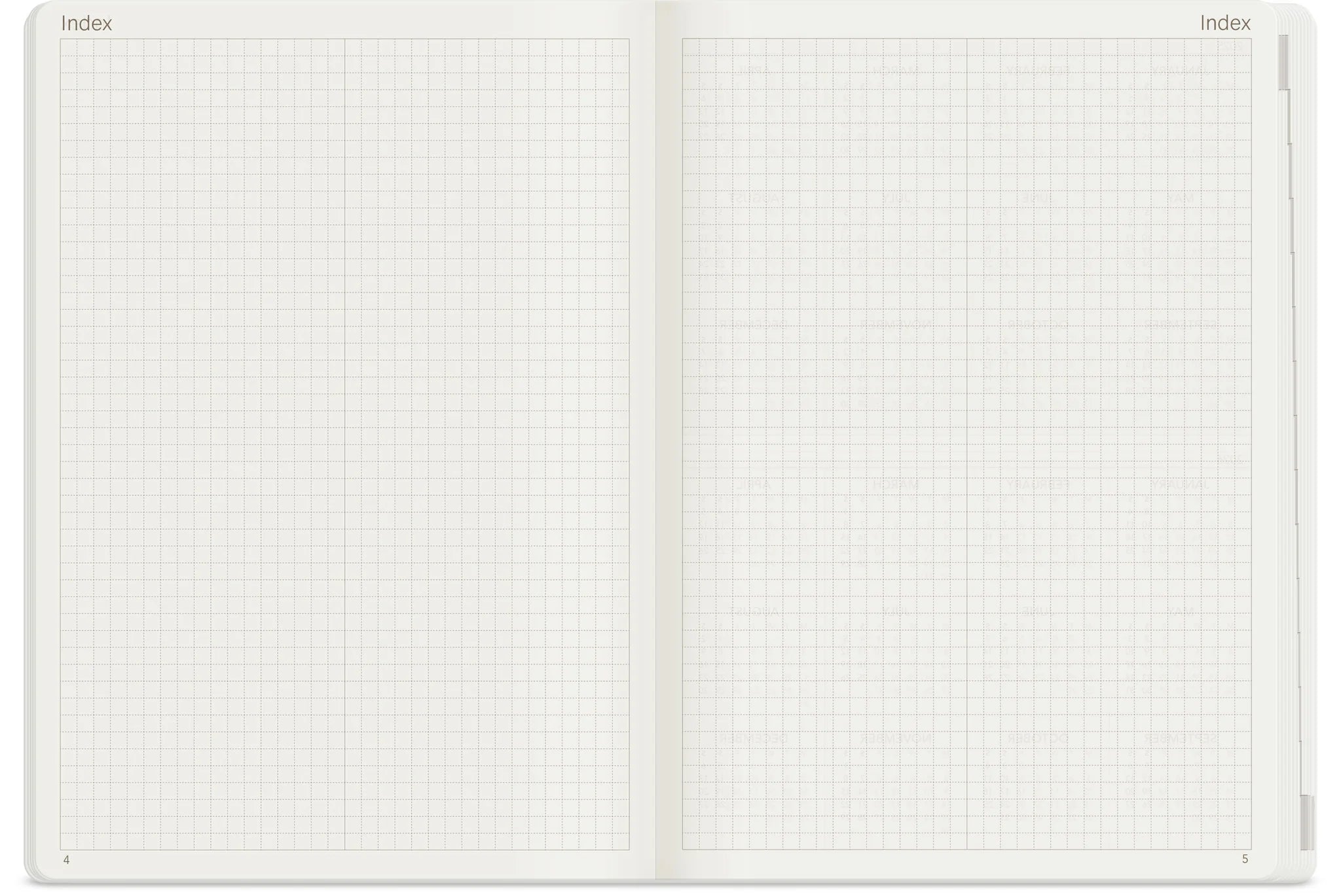 - Key and Index Pages: Numbered for hybrid bullet journaling.