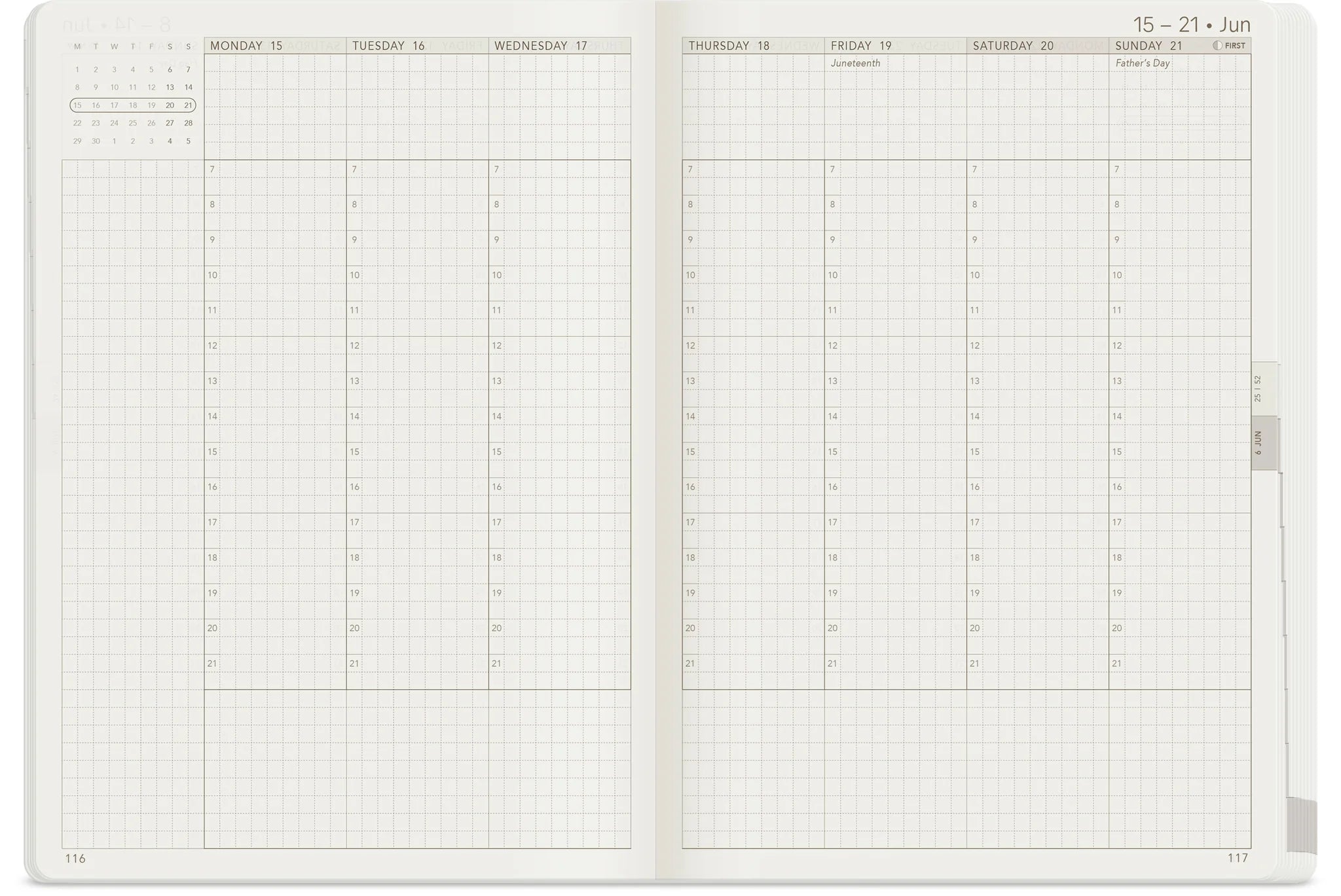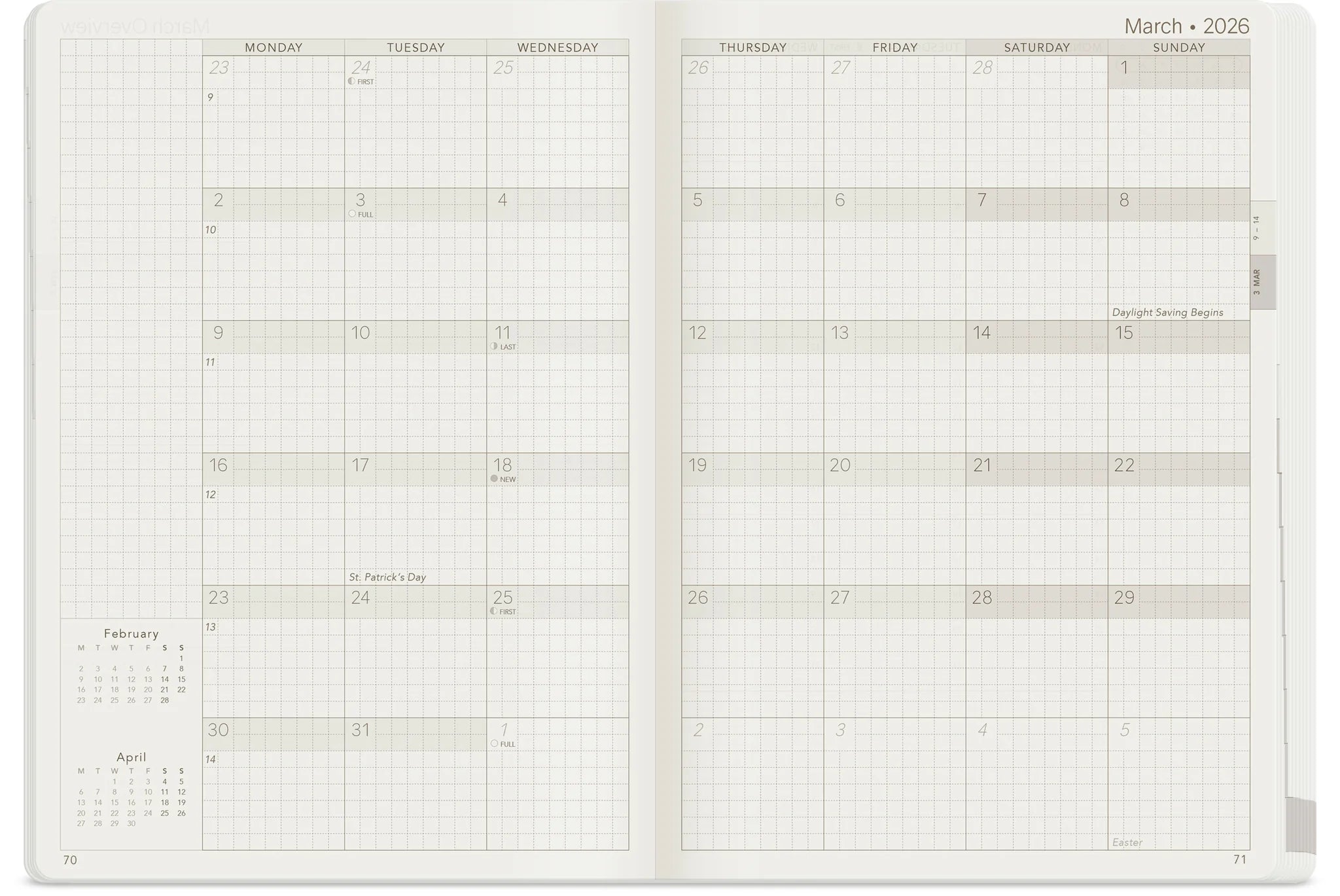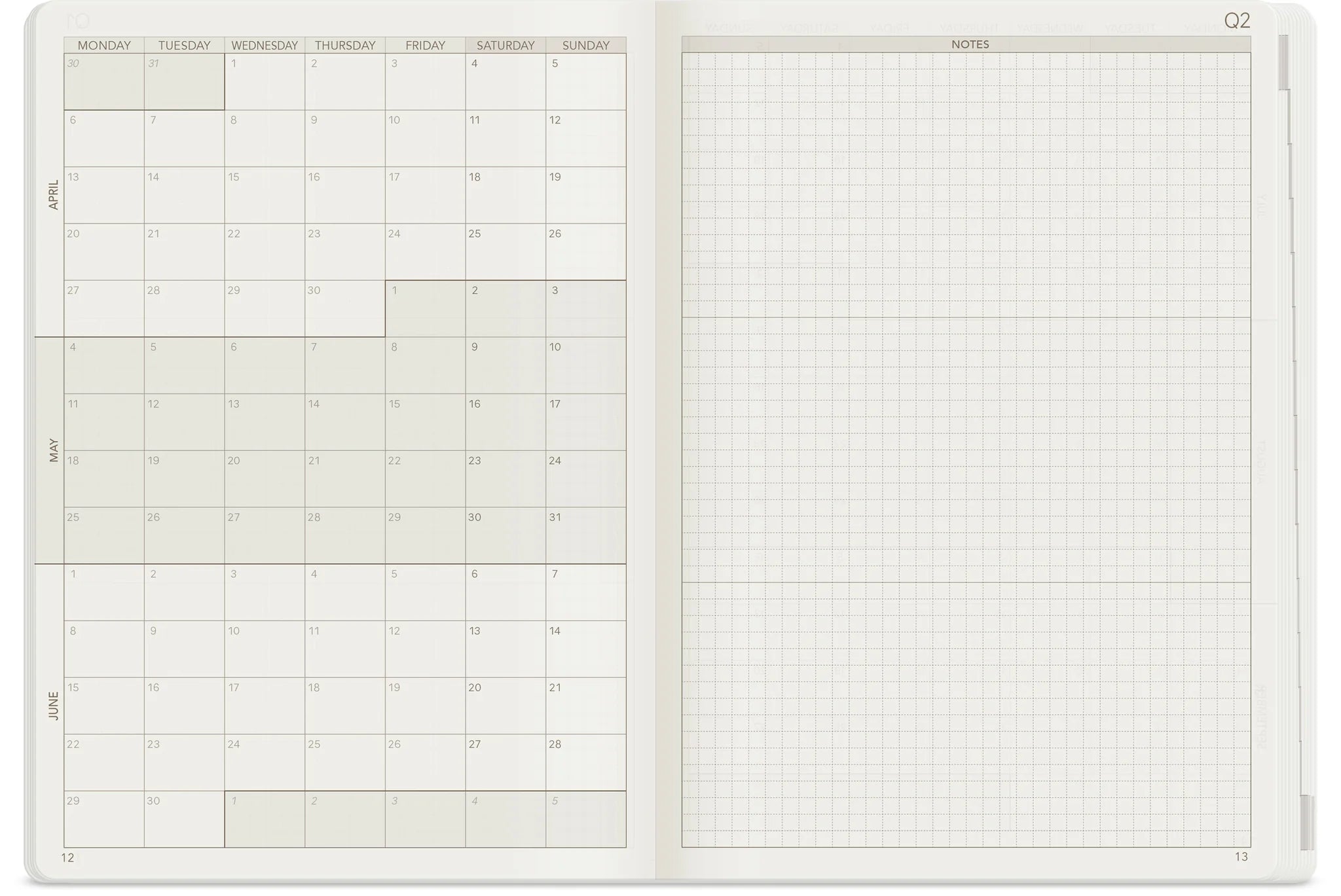 - Monday Start: Weeks start on Monday for consistent weekly planning.