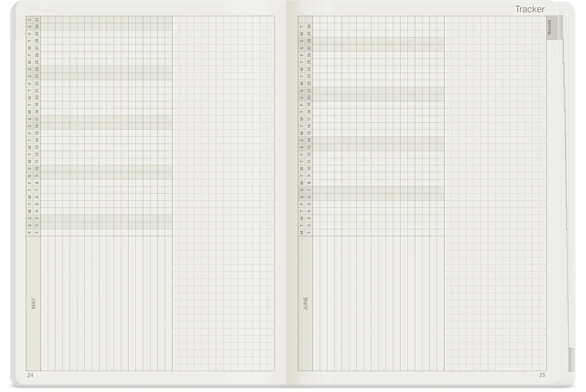 - Routine/Project Tracker: Monthly matrix and note section layout for comprehensive tracking.