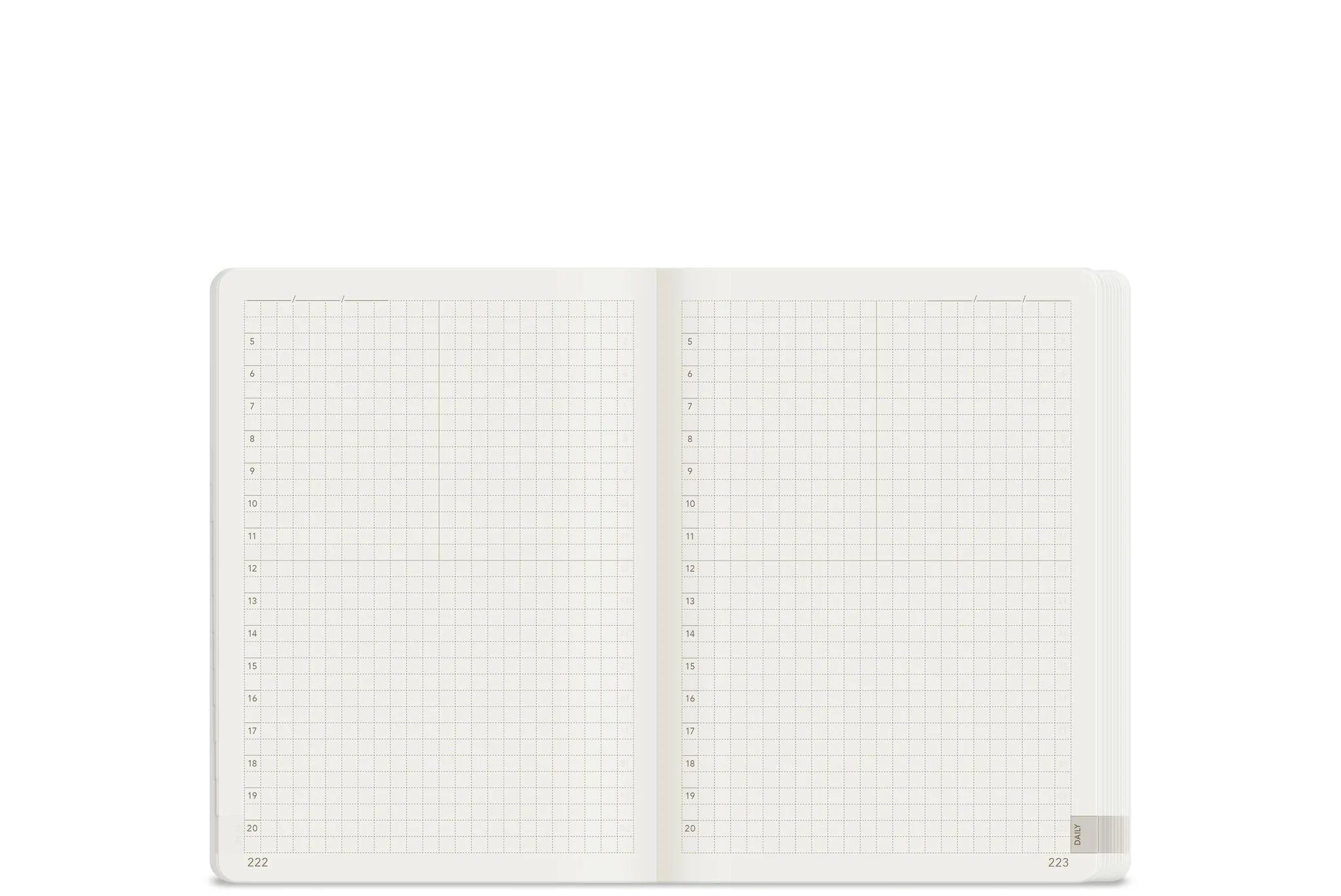 Designed with a minimalist aesthetic, this planner helps keep your space uncluttered, fostering creativity and inspiration. Its clean, open design allows you to personalize it, making it truly your own. The simplicity of the layout provides a blank canvas, encouraging you to infuse your unique style and ideas. Whether you're a professional, student, or artist, this planner offers the flexibility and freedom to structure your days in a way that best suits your needs, all while maintaining an elegant and organized appearance.