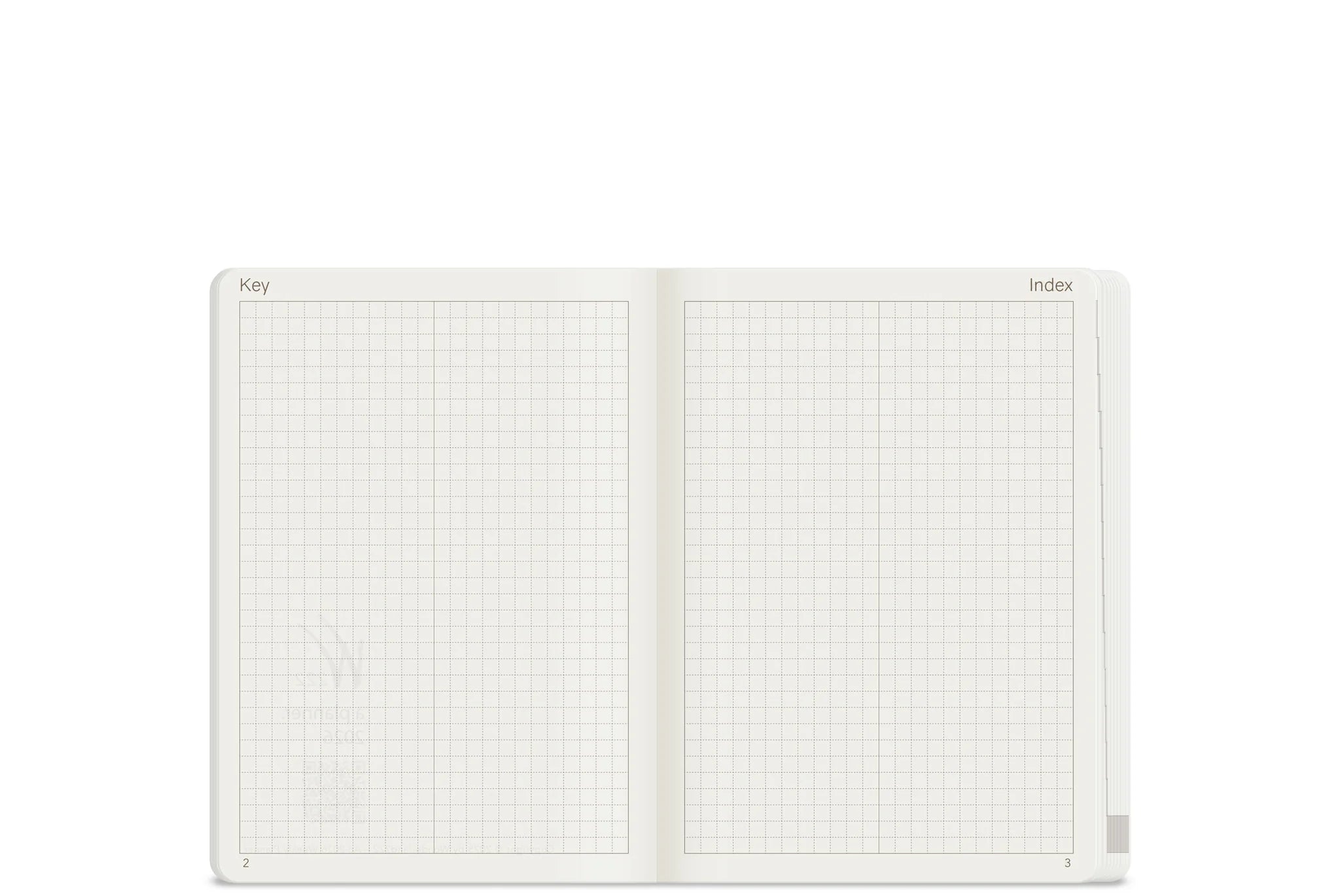- Key and Index Pages: Numbered for hybrid bullet journaling.