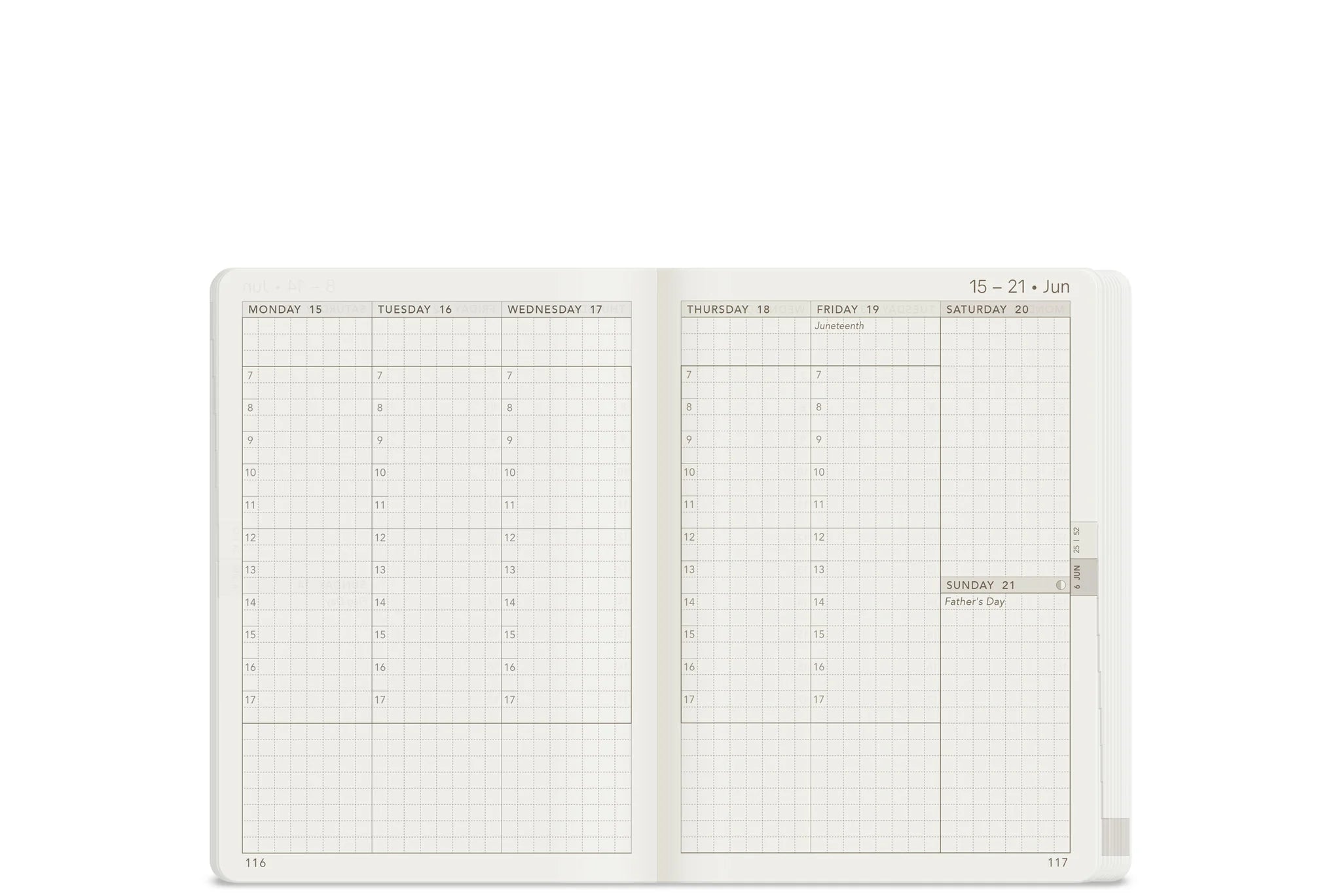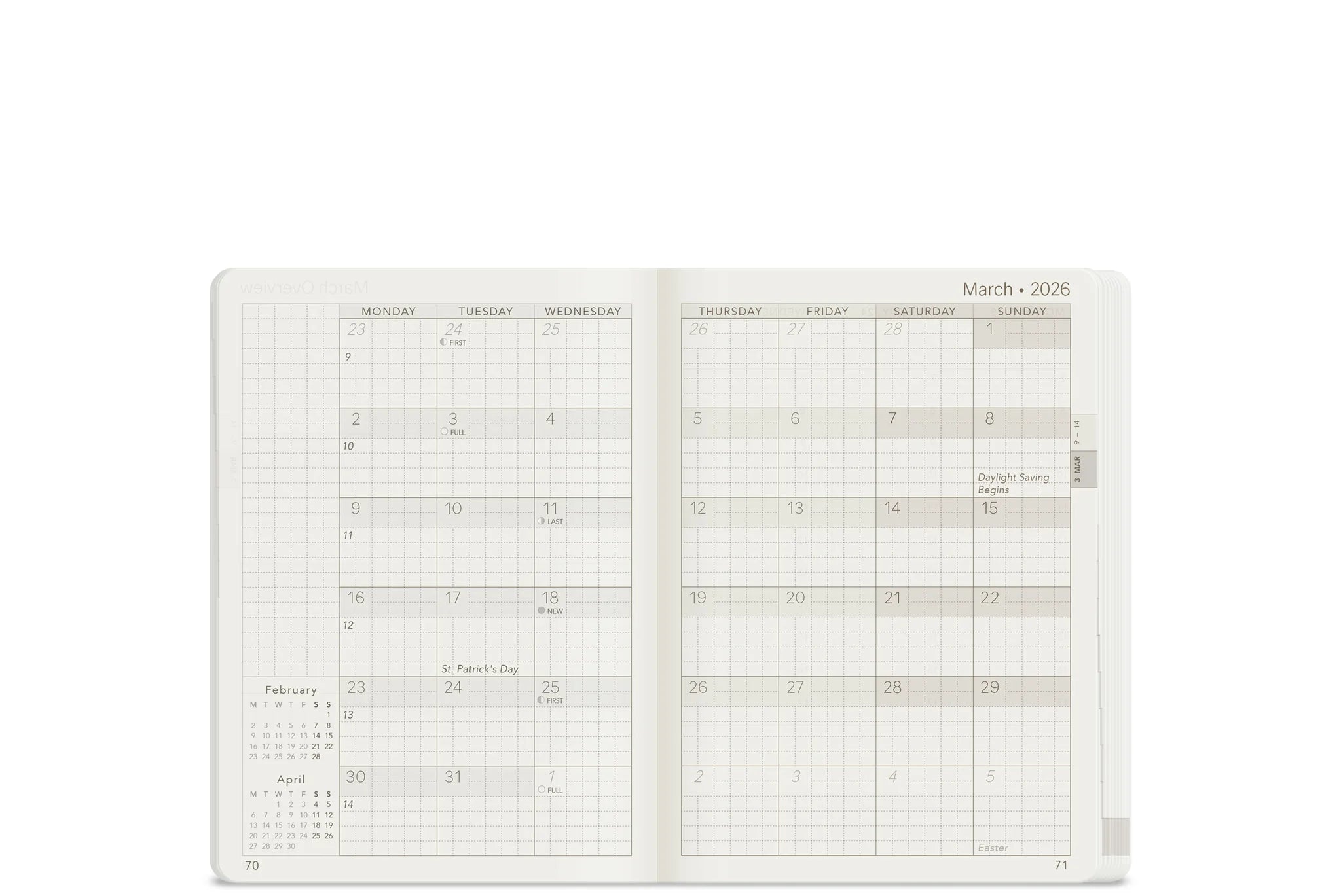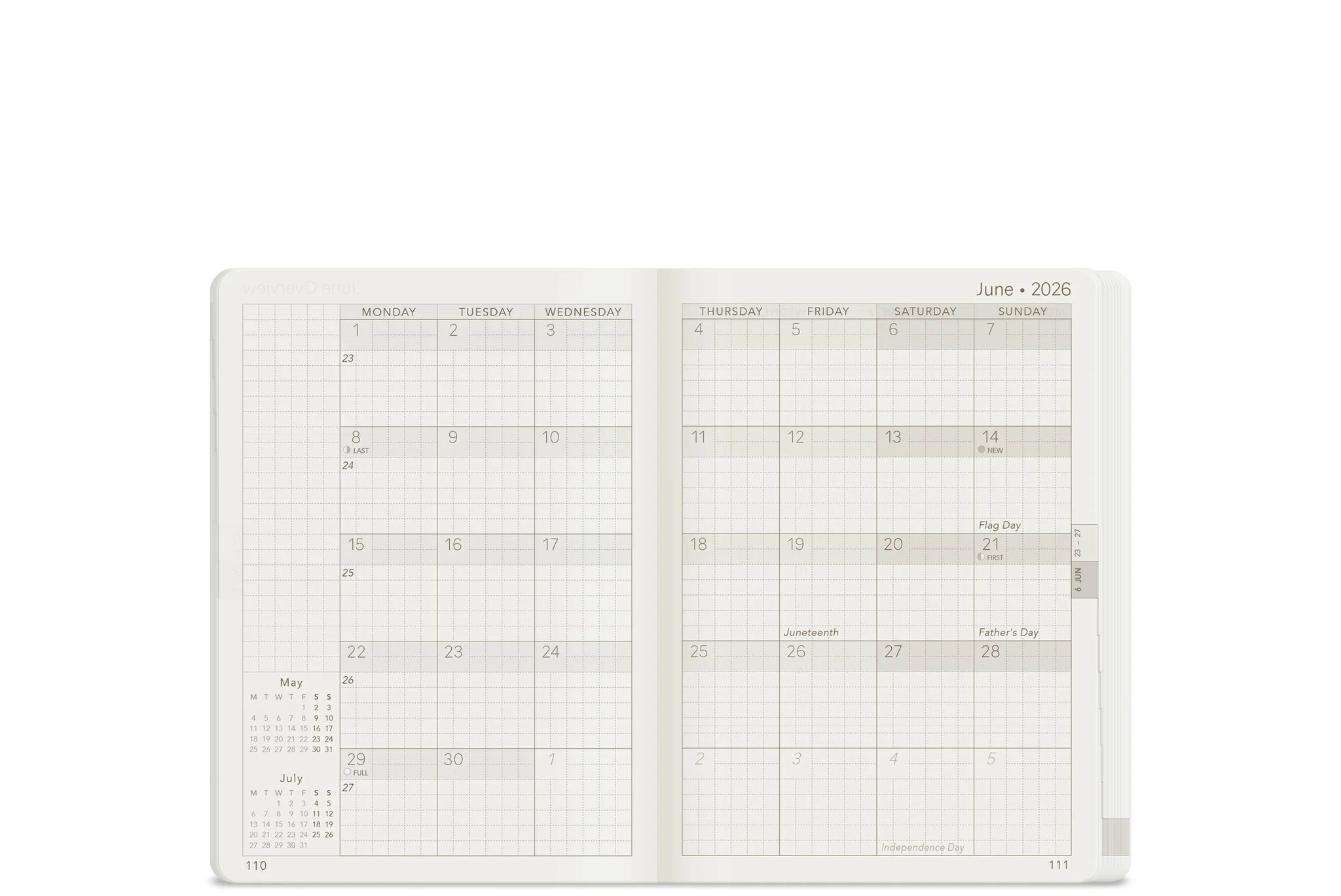 - Monday Start: Weeks start on Monday for consistent weekly planning.