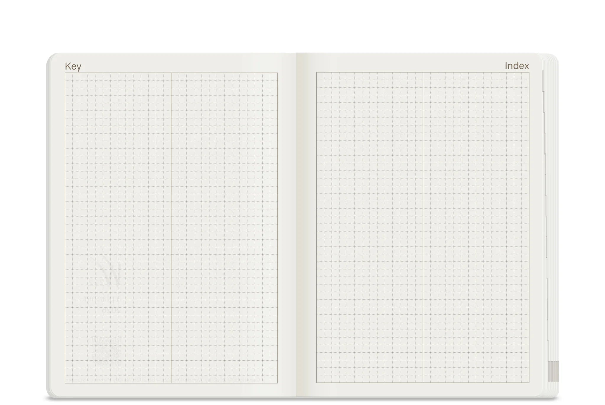 - Key and Index Pages: Numbered for hybrid bullet journaling.