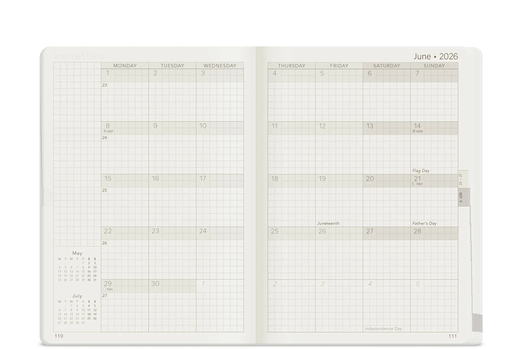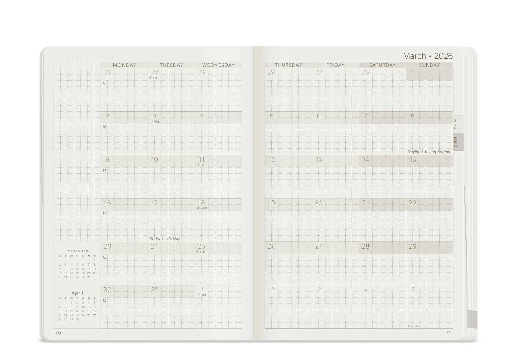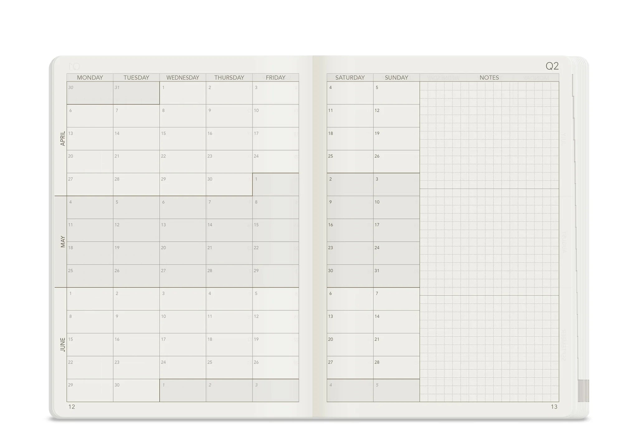 - Monday Start: Weeks start on Monday for consistent weekly planning.