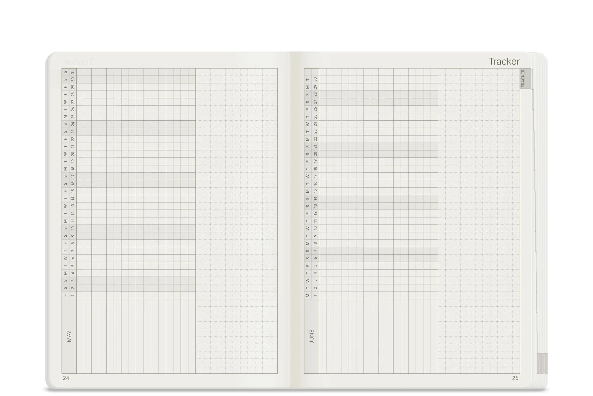 - Routine/Project Tracker: Monthly matrix and note section layout for comprehensive tracking.