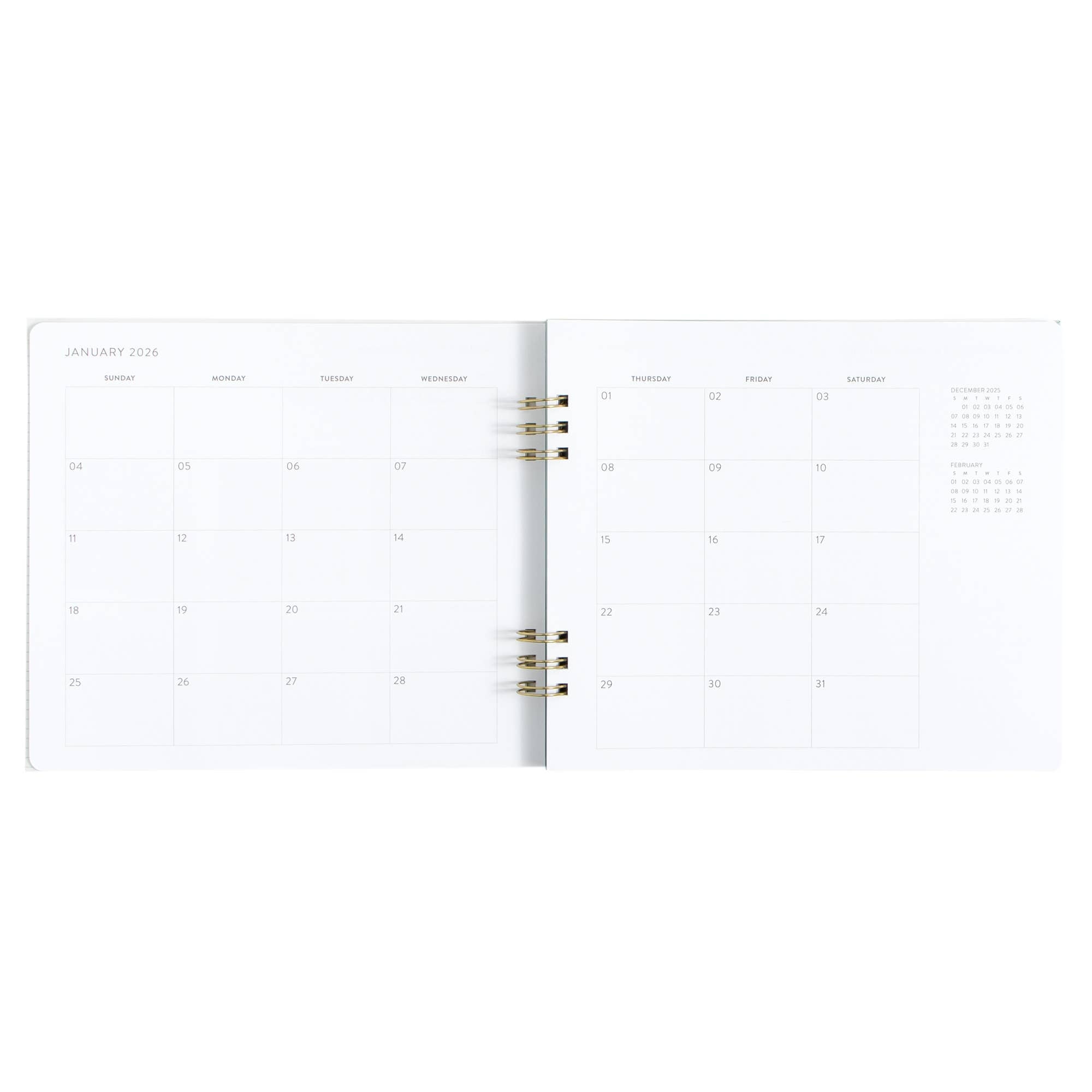 Interior: 12 months' worth of pages, 100gsm paper, 212 pages