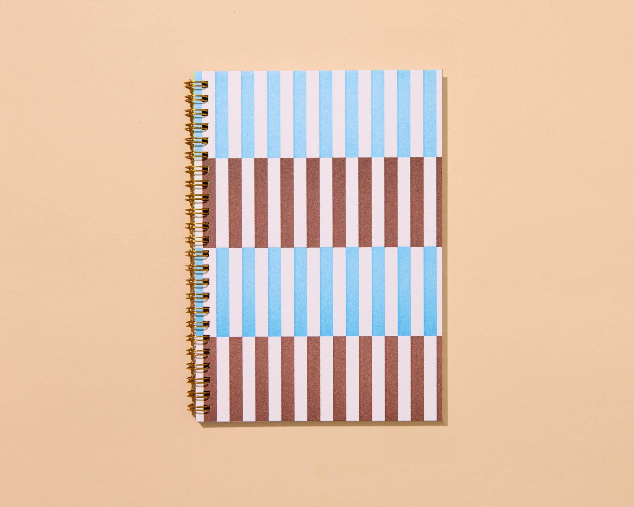 This trendy, striped notebook in cornflower blue and brown will make a perfect gift for just about anyone, including yourself! Our spiral notebooks are the prefect, portable size to hold your notes, lists, plans, dreams, ideas, recipes, spells, sketches, doodles, and secrets