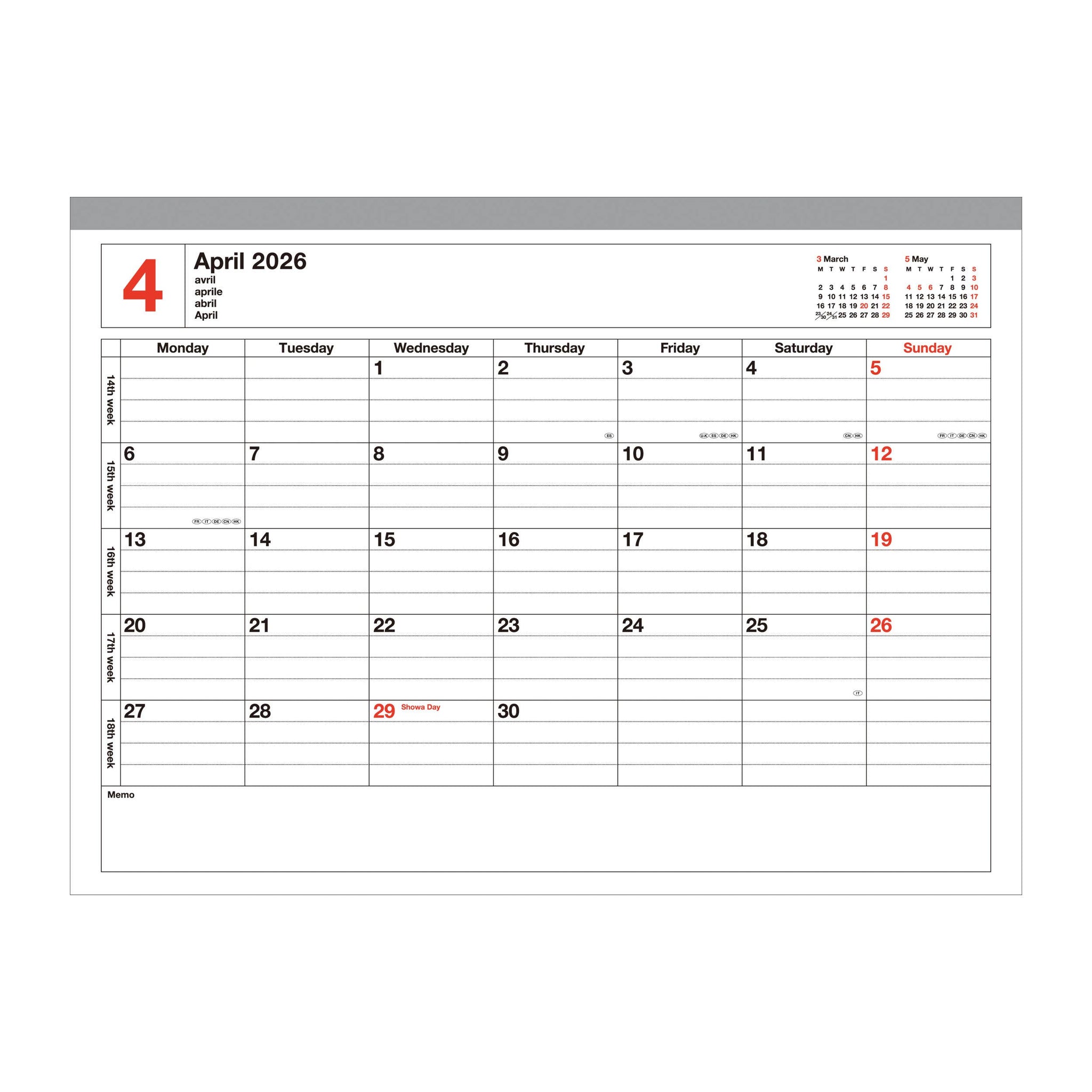 A long-selling notebook calendar loved for its practicality. Perfect for work scheduling and quick meeting notes.. Paper: