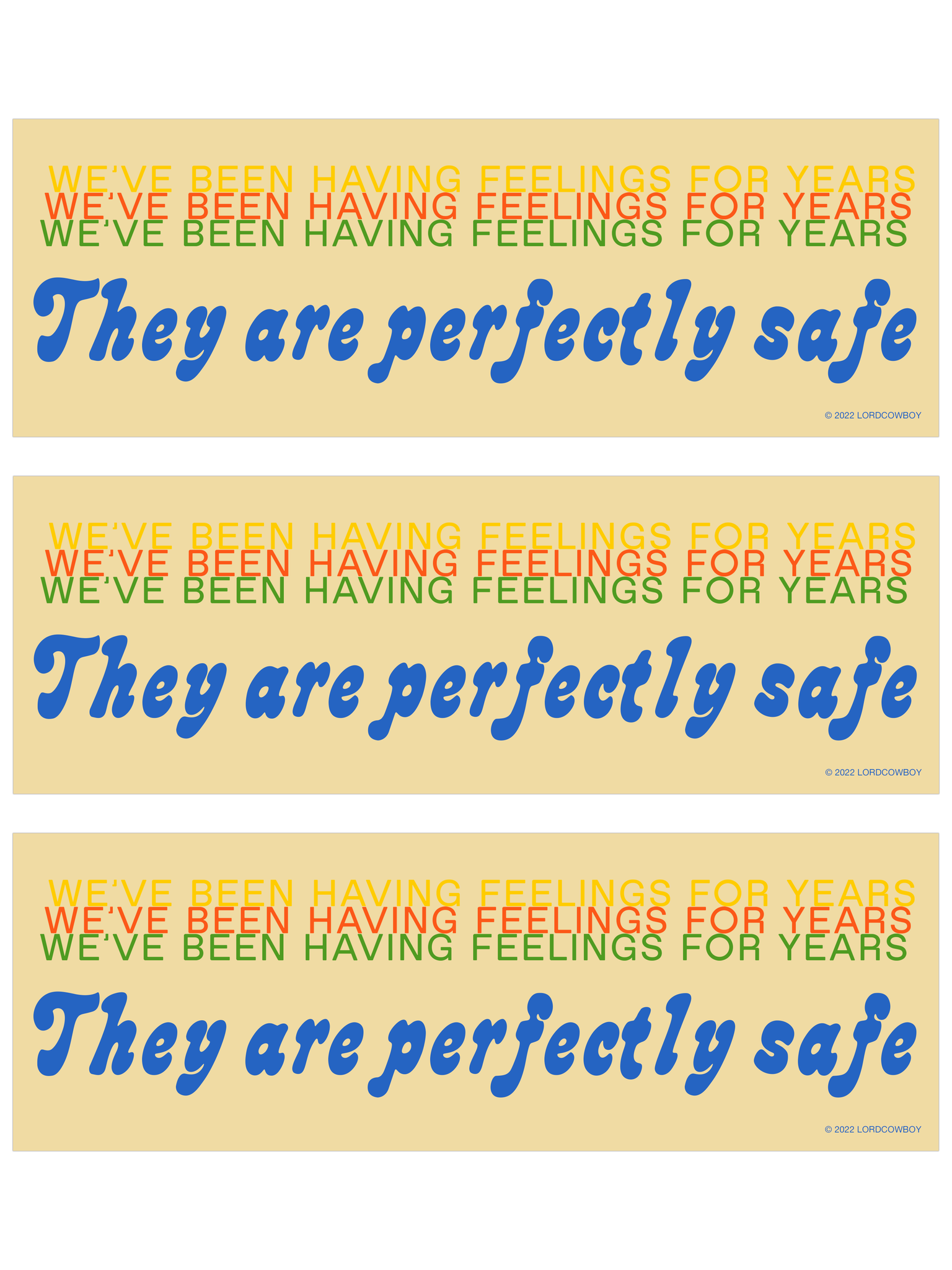 Feelings are perfectly safe, now available in a rainbow inspired color-way with a smooth matte finish.