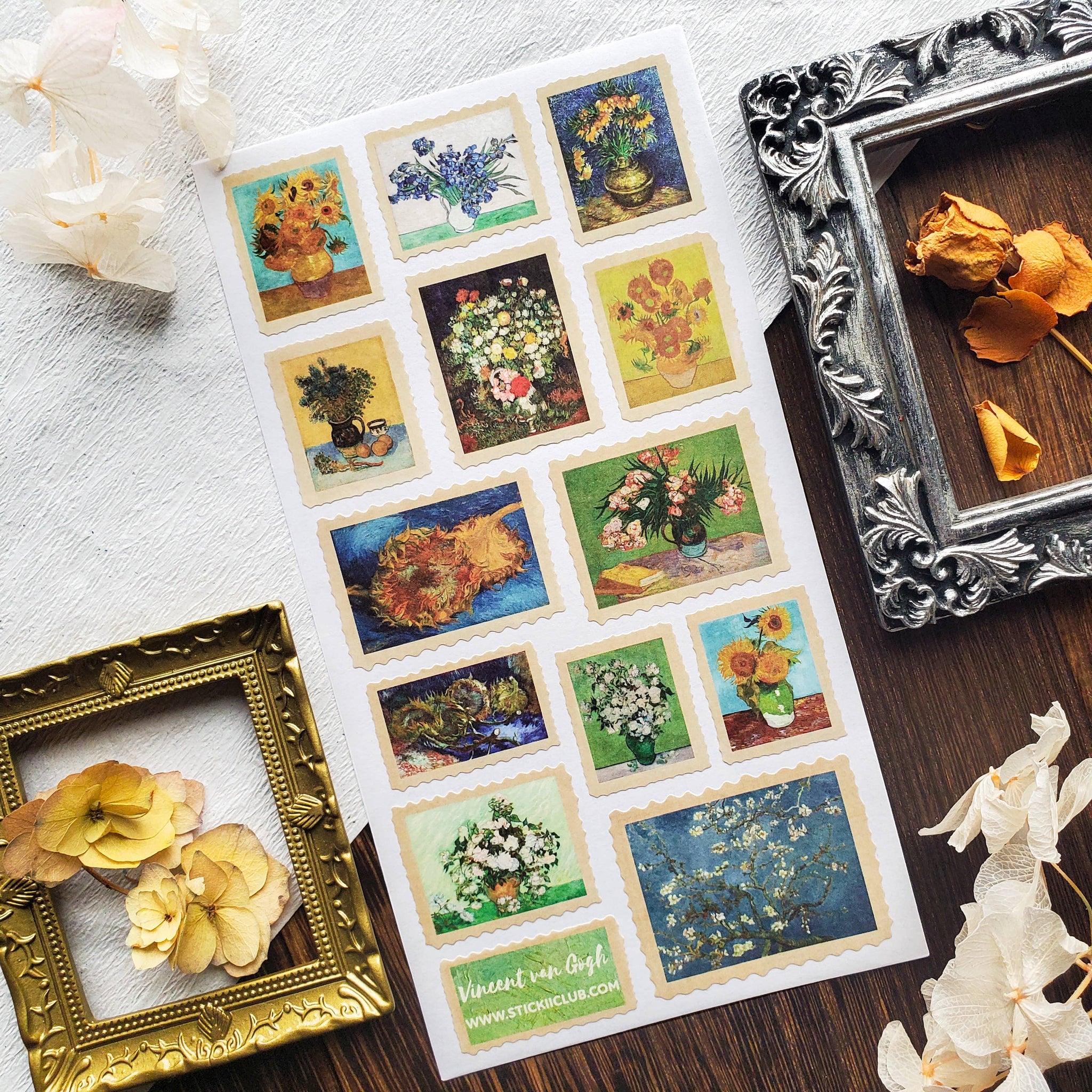 🎨 Just like the breathtaking flowers, Van Gogh’s art is truly something to be admired and this elegant sheet features some of his masterpieces. From his famous Sunflowers to Irises, these artistic sticker stamps will make you feel like you’re at a mini museum!